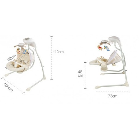 Качели работают от 4 круглых батарей по 1,5V, или от электросети ( зарядное устройство от завода-изготовителя включено в комплект)